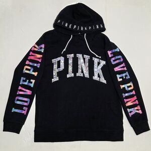 Victoria's Secret PINK Watercolor Hoodie Y2k Bling Sequin Love Streetwear Small