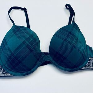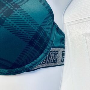 Victoria's Secret PINK Wear Everywhere T-Shirt Lightly Lined Bra 32C Green Plaid
