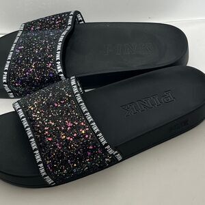Victoria's Secret PINK Women's Black Purple Glitter Bling Slide Sandal Size 7-8