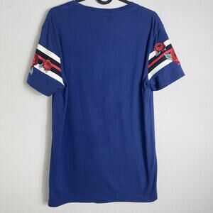 Victoria’s Secret "PINK" Women's Blue T-Shirt Small Rose Patch on Sleeve Applique Logo on Front