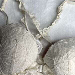 Victoria's Secret PINK Women's Bra 32C White Lace Push-Up Crossback Sexy