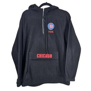 Victoria's Secret PINK Womens Size Small MLB Baseball Embroidered Chicago Cubs Fleece 1/4 Zip Hoodie Sweatshirt With Kangaroo Pocket