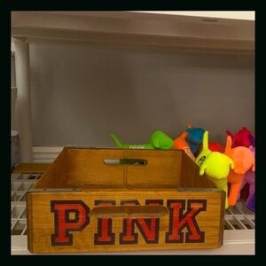 This wooden display bin is from the PINK store so it is in excellent used condition! No chipped wood or paint, scratched or major flaws at all!