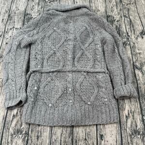 Victoria’s Secret PINK Wool Cable Knit Cardigan Belted Shawl Collar Rhinestone