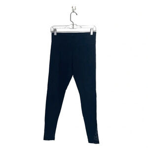 PINK Victoria’s Secret Yoga black lace leggings. In excellent condition! Mid-rise. Elastic waistband. Pull-on style. Neon pink & purple tropical icon on the right ankle. Sheer lace inset details on both ankles. 27” inseam. True black color. Size small.
