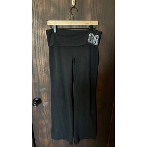 Victorias Secret PINK Yoga Pants Black Sequin Love Pink 86 Foldover Flare Large