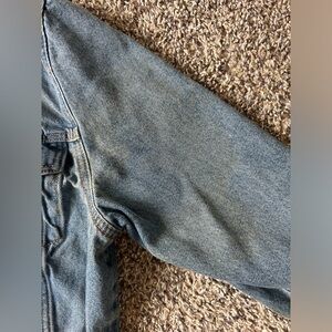 Very cute jacket however, what I thought may have been intentional discoloring, after laundering I see it seems to be stains on the left side of the jacket. It looks like maybe coffee was spilled on the jacket as it is in front, left sleeve as well as the left back side. The last photos try to pick it up.