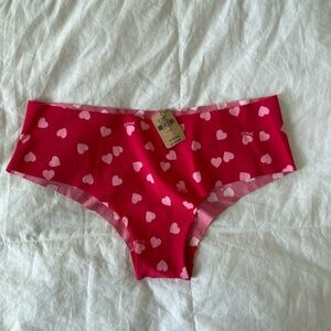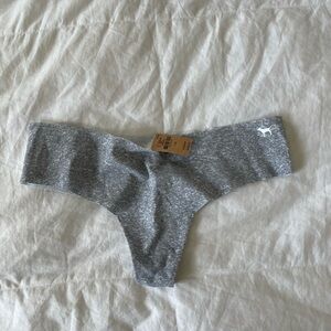 NWT never worn 3 pair of Victoria’s Secret PINK panties. 2 no show cheeky and one no show thong. Things a heather gray color, one cheeky is a red and pink heart valentines pattern, and the other cheeky is a multi blue animal print pattern.