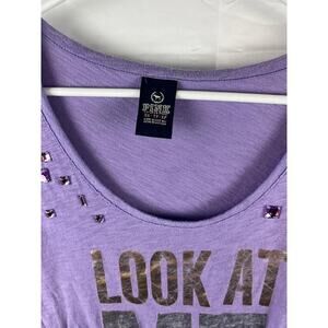 Victoria's Secret PINK purple Short Sleeve T-Shirt XS "Look at me" rhinestones