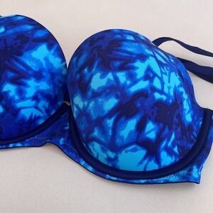 Victoria’s Secret PINK push up bra 34D neon cobalt blue tie dye rave abstract