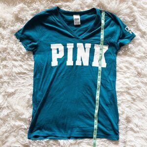 Victoria's Secret PINK teal and white V-neck t-shirt in excellent condition