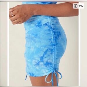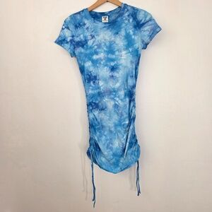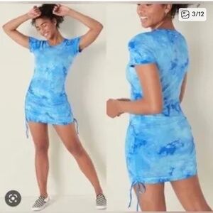 Size: Small Slim fit mini dress. Crew neckline. Adjustable cinching at sides.
