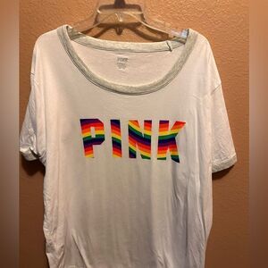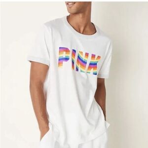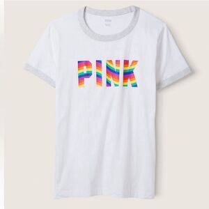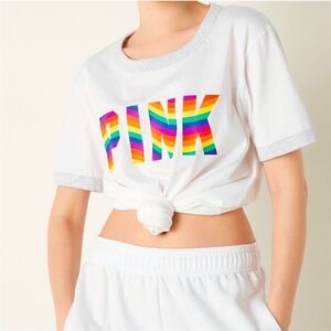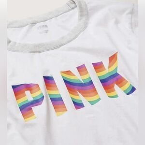 Victoria's Secret PINK Shirt Campus Crew Tee Pride Rainbow Logo
