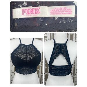 Victoria’s Secret PINK Wildflower Lace High Neck Bralette S - Black