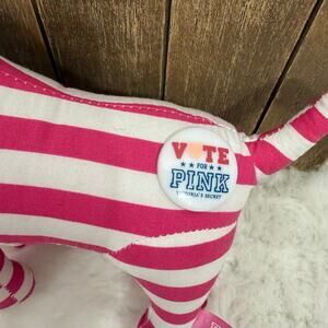 Victorias Secret PInk Plush Dog Stuffed Animal White Striped Vote Pink 2008