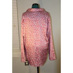 Victoria’s Secret PJ Set Large Pink Red Heart Print Satin Button Up Top Pants