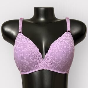 Victorias Secret Padded No-Wire Bra Womans 36DD Strappy Adjustable Lace Purple