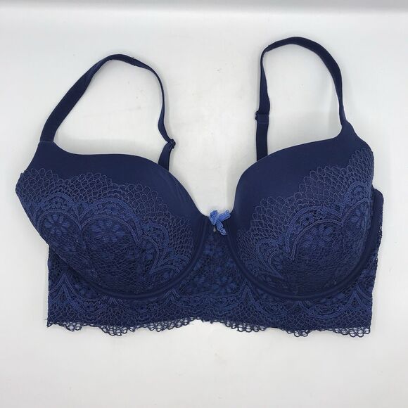 Victorias Secret Padded Underwire Lined Demi Lace Bra Royal Blue 38DD