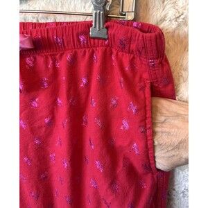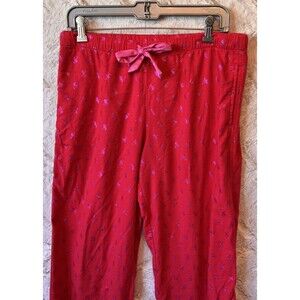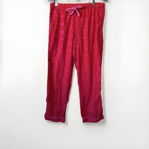 Victoria's Secret Pajama Pants Medium Pink Red All Over Print Drawstrings