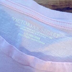 Stay comfy and cute in this Victoria’s Secret pajama set! Soft pink pants with a playful black heart polka dot print, paired with a matching short-sleeve top. Designed in a Large Short (Petite) fit for extra comfort. Perfect for lounging, relaxing, or gifting.