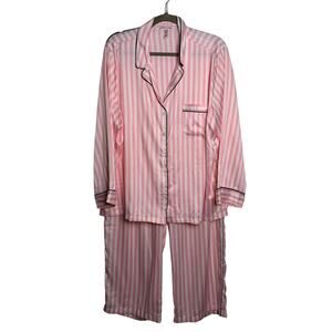 Victoria's Secret Pajama Set Top & Bottom Pink White Women's Size XL
