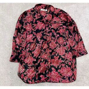 Victoria's Secret Pajama Shirt Red Black Floral Button Up Size Medium
