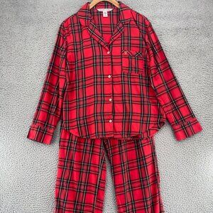Victorias Secret Pajamas Womens Small Red Plaid 2 Piece Set Button Up Flannel
