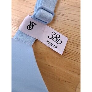 Victoria's Secret pale blue padded push-up bra with lace back, size 38D. New with tags.