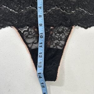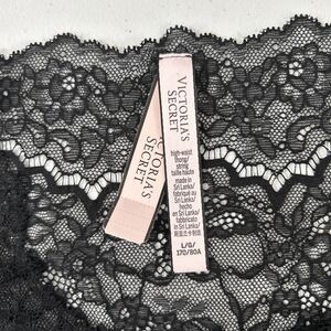 Experience the perfect blend of comfort and elegance with this Victoria's Secret Women's Thong in size L. The high-rise design offers a flattering fit, while the lightweight polyester fabric ensures all-day ease. Adorned with a chic black lace overlay and a delicate floral pattern, this panty is a fusion of classic beauty and modern allure, featuring the iconic Victoria's Secret logo accent. Caring for this piece is a breeze, as it is machine washable, ensuring that it remains a staple in your intimates collection. The semi-transparent opacity adds a touch of allure, making it a versatile choice for any wardrobe. Whether paired with your favorite jeans or a comfy lounging outfit, this thong is designed to enhance your comfort without compromising on style.