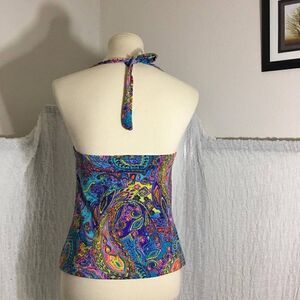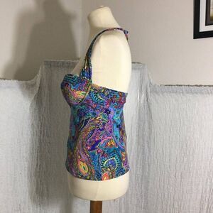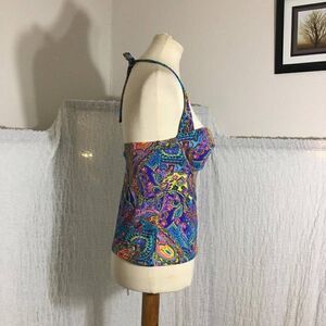 Multi-colored pasley print tankini top. Built in bra. Pre-owned in good condition. Please refer to pictures for best description and condition verification.