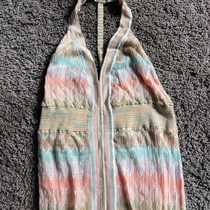 Absolutely stunning Victoria’s Secret knit maxi dress. Halter neck and backless design. This material is incredibly soft and flattering. There is a slit up the front of the dress which came to about knee height on me at 5’9”. It does have a shorter under-layer so it is not sheer. This dress is absolutely beautiful and I hate to part with it, but I am planning a wedding and need some extra money. Open to offers and willing to answer any questions!