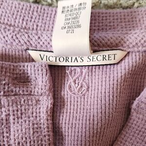 Charming pastel pajama set. Soft top and pants for comfort. Lavender waffle knit victoria secret pajama set. Crop long sleeve with pajama pants with cuffed leg. Throwing in an extra mint blue long sleeve top. No flaws!