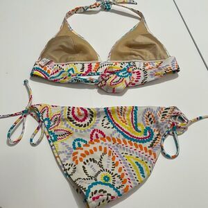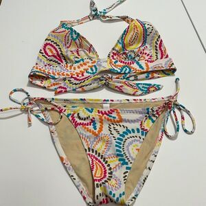 Gently worn women’s size medium Victoria’s Secret patterned bikini swimsuit. Halter neck and back tie, bottom tie bikini. Comes from a smoke free home, bundle with other items to save & minimize shipping cost.