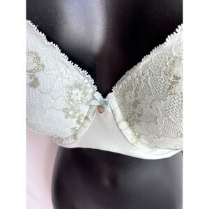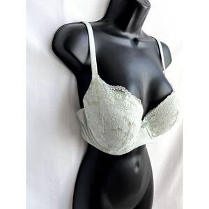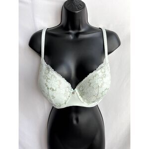 Victorias Secret Perfect Shape Push Up Bra Sage Green Lace Trim 36DD Fairycore