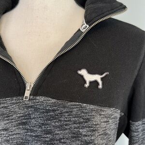 Victoriaβs Secret Pink Black Cropped Quarter Zip Long Sleeve Sweatshirt