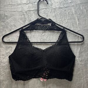 Victoria’s Secret Pink Black Lace Pushup Wireless Around Neck Detail Size Small