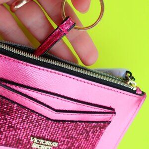 Victoria's Secret Pink Bling Card Case Key Chain Small Wallet