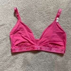 Victorias Secret Pink Bling Triangle Cotton Bralette Carmine Rose Pink NWT M 💖 bling crown on back super cute sold out limited edition color! Bright pink 🩷 size medium - DD fits me perfectly as a 34C and can fit size 34DD & larger chest sizes as well! I think 32C would be great too! Grab it now! More VS pink listed to bundle! 🩷✨ perfect for everyday wear as it's comfy unlined, but band is supportive and great for college & back to school!