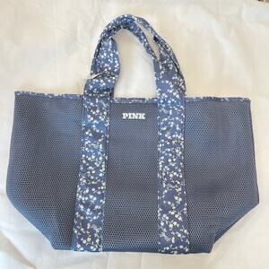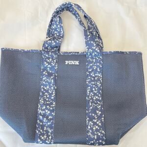 Victoria's Secret Pink Blue Mesh Tote Weekender Bag Floral Trim