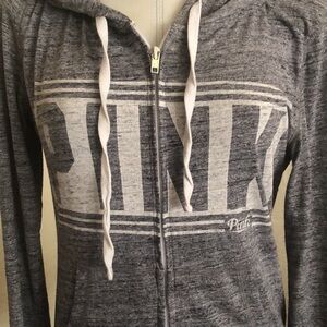 Victoria’s Secret Pink Blue White Logo Zip Up Hoodie Sweatshirt
