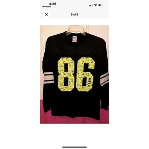 Elevate your casual wardrobe with the chic Victoria's Secret Pink Campus Mesh Tee. Designed for the modern woman, this black floral neon citrus logo T-shirt features a colorblock pattern that adds a vibrant touch to your everyday style. The long sleeves and crew neck provide a comfortable fit perfect for a laid-back day on campus or a casual outing with friends.