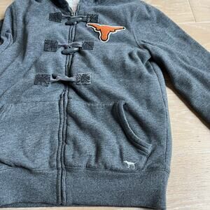 Victoria's Secret PINK Collegiate Collection w/ Jones & Mitchell UT University of Austin Longhorns hooded, full zip jacket. Longhorn and peace sign patches. Zipper and toggle closure. Very warm and soft!