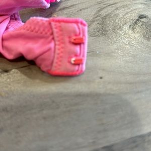 Victoria’s Secret bra size 34B. It has soft cups, underwire, adjustable back closers. Partially removable straps. It’s a good “starter bra” comfortable and cute. Perfect pink color!
