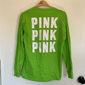 Victoria's Secret Pink Cotton Campus Long Sleeve Crew Neck Color Green Sz Small