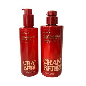 Victoria's Secret Pink Cranberry Body Lotion & Glow Boosting Body Oil Set
