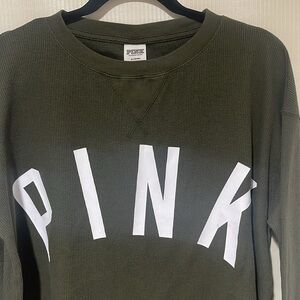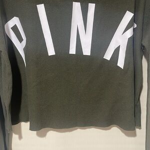 New without tags Victoria's Secret Pink women's crop top in olive green. There is a tiny stitch on one of the sleeves that is barely visible, as shown in the photos.