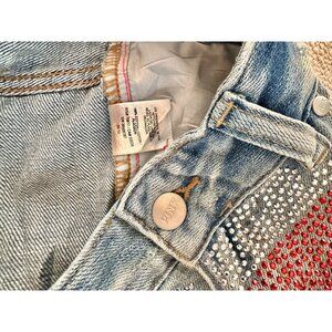 Victorias Secret Pink Denim Rhinestone Embellished Frayed Hem Shorts Size 8