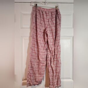 Comfortable pink pajama pants with a drawstring waist. Perfect for lounging.