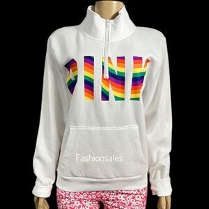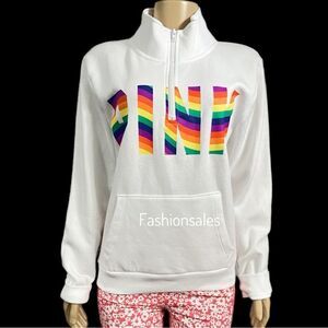 Victorias Secret Pink Everyday Lounge Quartet Zip Sweatshirt Rainbow pullover XL
