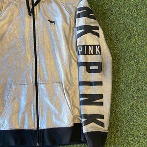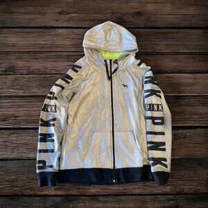 Victoria's Secret Pink Fashion Show Silver Metallic Hoodie Jacket Size Medium